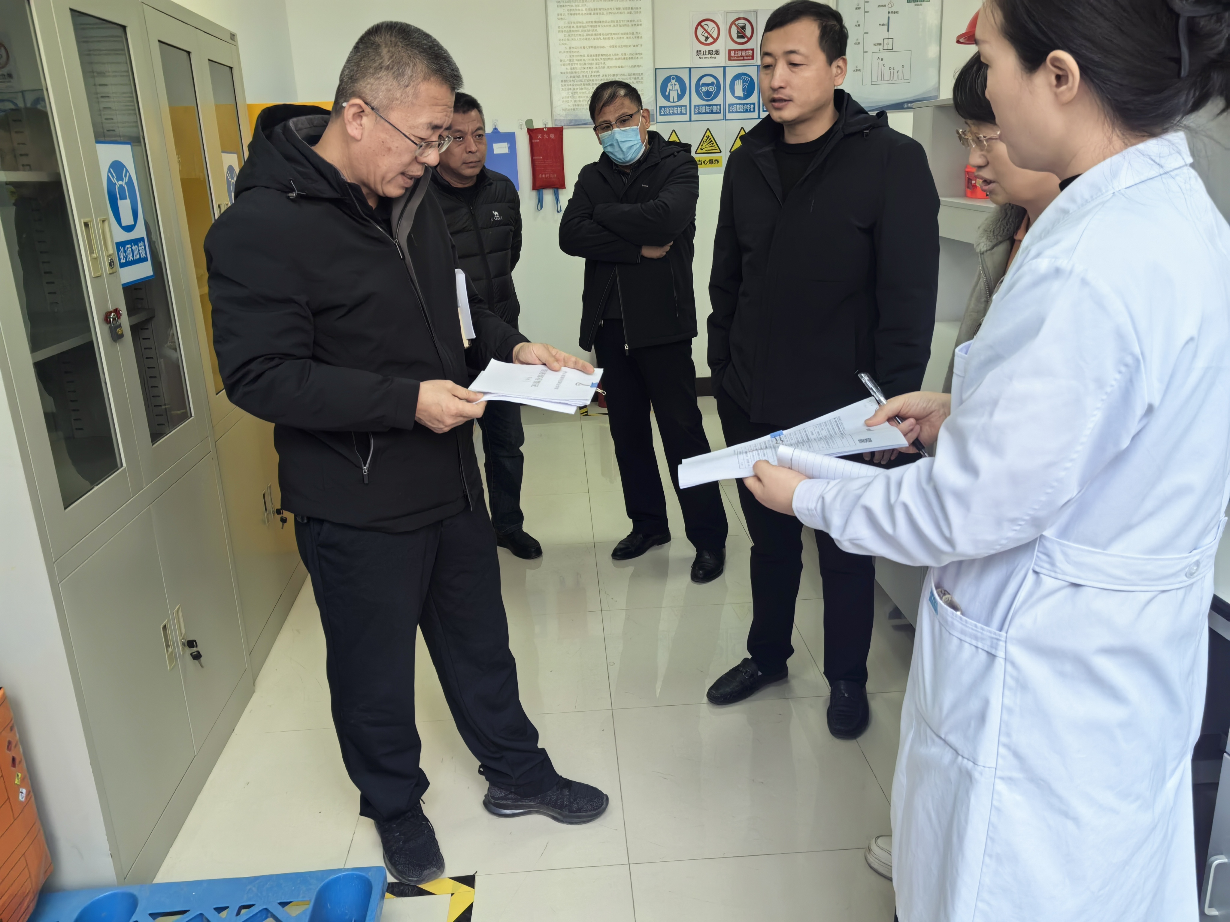 检查组一行实地查看了各场所安全管理制度落实情况,重点检查实验、实训室管理体系建设、安全防护设施配备与维护、化学危险品采购、存储、使用规范等情况,对用电线路、消防设施完好性及应急通道畅通情况进行细致排查。针对检查中发现的问题,现场提出整改意见。